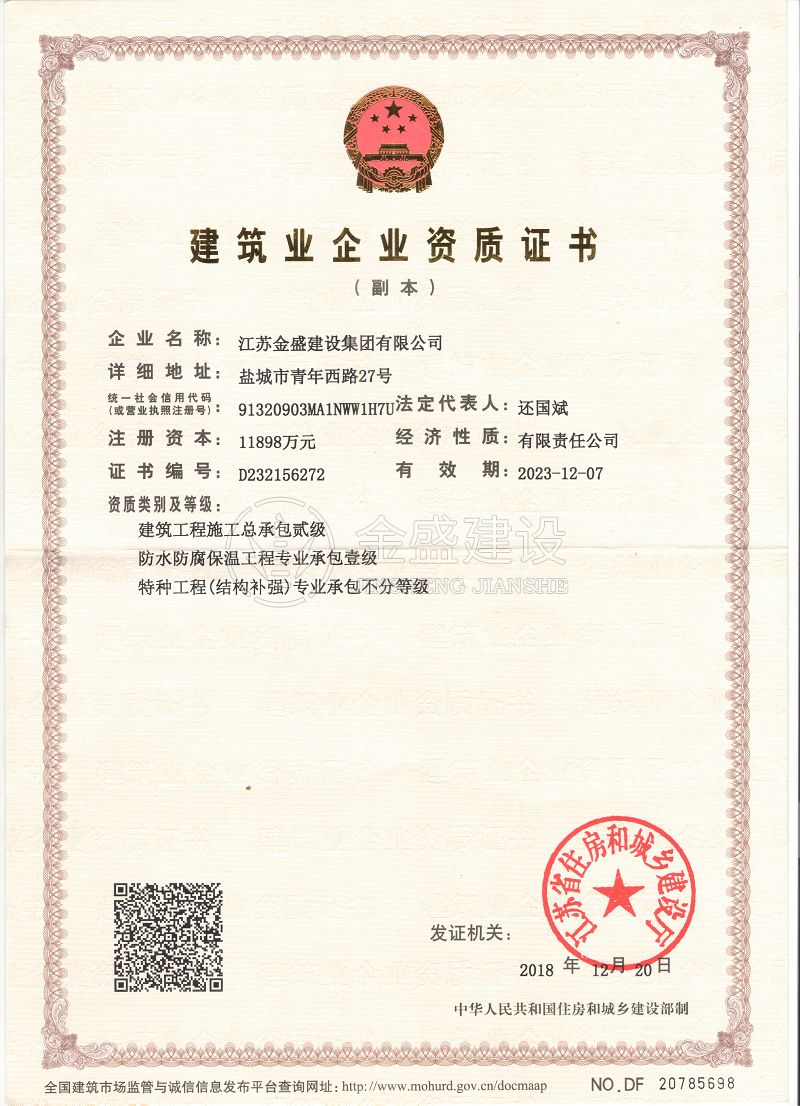 施工總承包貳級(jí)新防水防腐保溫工程專業(yè)承包一級(jí)