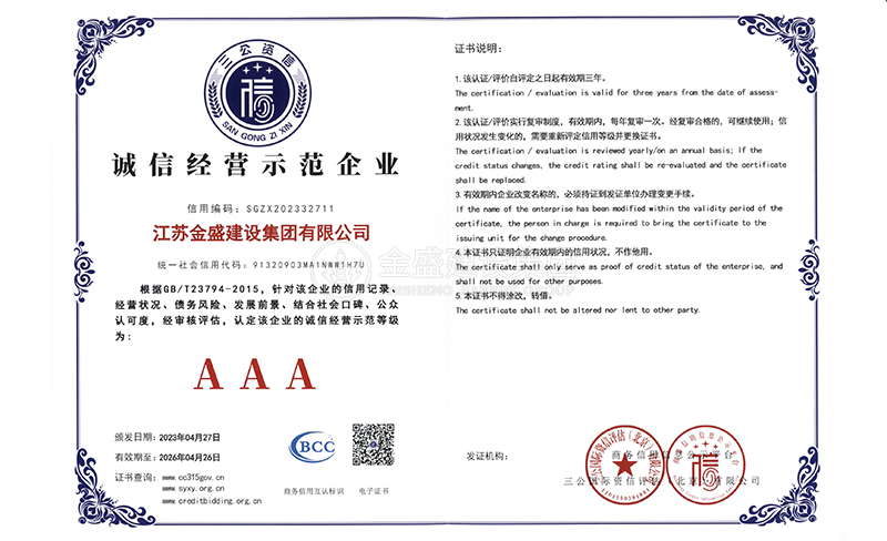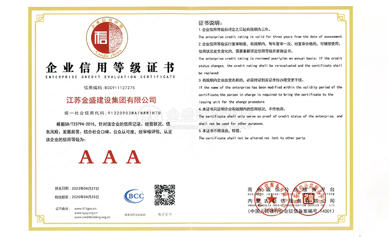 3A級(jí)資信等級(jí)證書(shū)